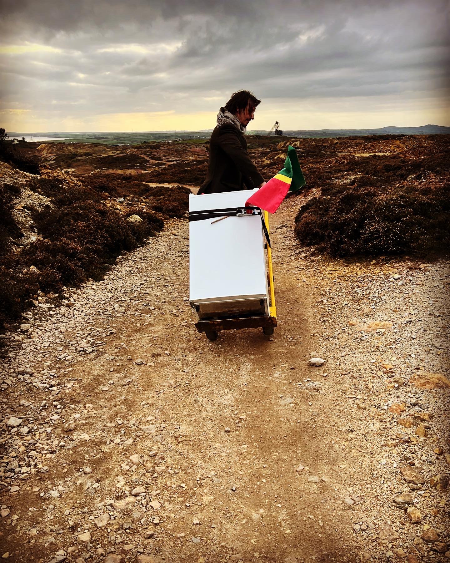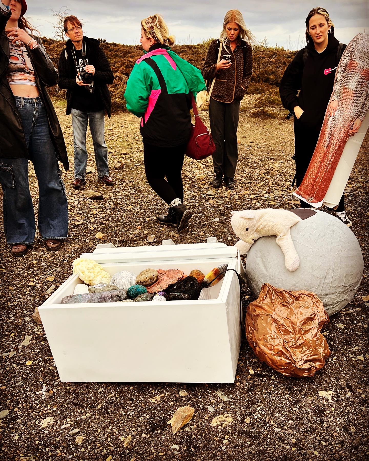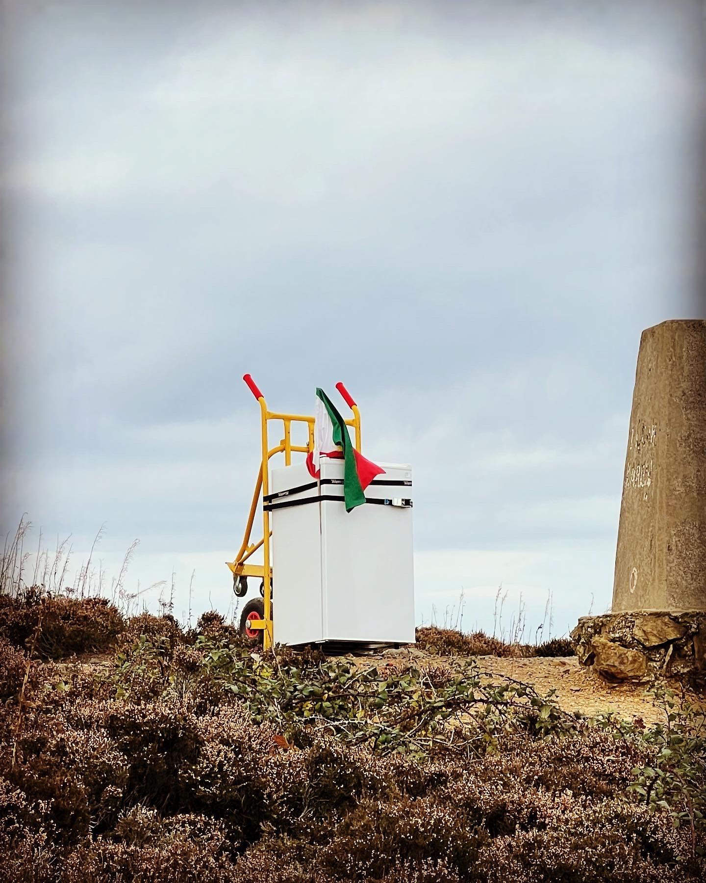 Paris Mountain and the Fridge event, we all were to make at least x5 stones out of any lightweight materials and carry them to the top of the mountain, these would be then placed over the fridge to ‘bury’ the fridge before coming back down the mountain. I was relived to find that they had brought a trolley and the ‘Event’ commenced, Paris Mountain is such an alien landscape, more of a hill, but Anglesey is so flat it is probably considered a mountain, unless it was a mountain and all that is left is the hill? I was thinking about other artists who have done performance art like this that we were introduced to online to introduce this project, a fridge on the mountain filled with lightweight replica interpretations of stones would just be that, the performance however is the main event, the doing, the experiencing, being there and the generating new ideas for new work all came from that trip for me.