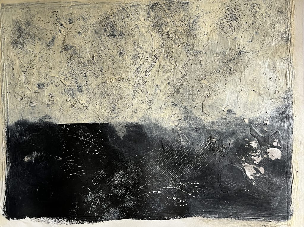 I have moved my practice forward, I have been challenged by changing direction, painting was always something I wanted to do but could not find my voice in the medium, due to necessity I have had to find my voice through painting but feel that I am only at the beginning of expressing myself with paint, imagined landscapes from my past re imagined with a new narrative of hope, the trauma is encased within the layers, the layering healing old wounds, psychic wounds, finding research that unlocks so much of the language and theories that will enable me to move forward.