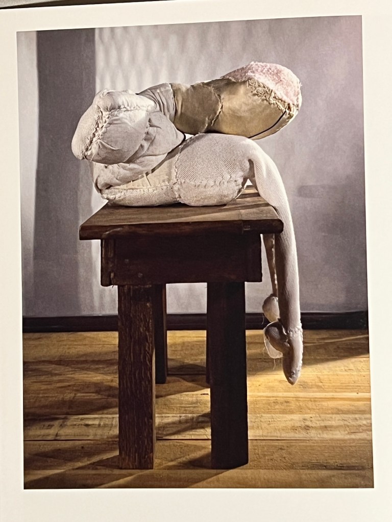 Louise Bourgeois images from the Woven child exhibition in the Hayward Gallery London February 2022 exploring her textile figurative pieces continue to inspire me. my drawing at the gallery brought me closer to this small child like soft sculpture who’s pose felt like one of defeat, submission, giving up, I connected with how I felt Louise was feeling in displaying this in this way, as with much of her work I felt that in this exhibition the pieces were powerful narrative of a sort of pain, internal, external, some were difficult to look at without feeling emotional. Until I got home I realised the power of drawing whilst studying, I took the time to consider the depth, the composition, each stitch, each placement that if I would have taken a flat picture it would not have had the same impact and I realised that drawing is somewhat more important visual exercise for me.